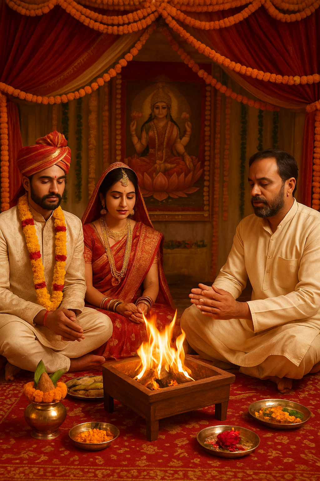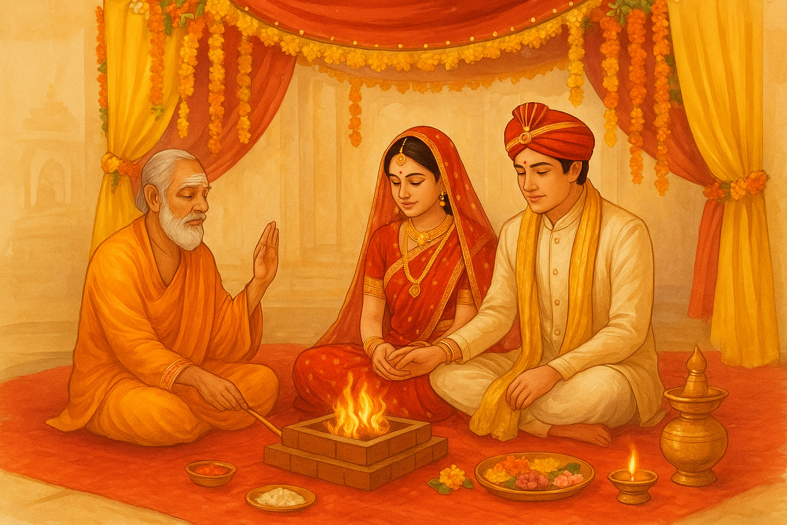 Our pandits perform rituals like Havan, Yagya, Shanti Vidhi, Shubh Vivah – Wedding Ceremony, Satyanarayan Katha, Griha Pravesh, Namkaran Sanskar, Nava Graha Shanti, Engagement, Festival Puja, Janeu, Ganesh Puja, Ram Katha, Mundan Sanskar, Shrimant Puja, Namkaran, Bhagwat Katha, Vastu Shanti, etc.